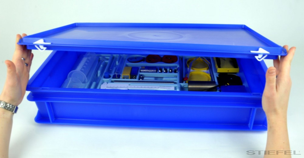 Container universal cu capac blocabil, fabricat din material reciclat KS, conceput pentru depozitarea și transportul seturilor NTL. Construcția foarte robustă, cu stâlpi de colț întăriți și nervuri perimetrale pe marginea superioară și bază, permite o capacitate de încărcare de până la 120 kg. Capacul poate fi detașat rapid sau blocat, asigurând protecție împotriva prafului și luminii și eliminând necesitatea mobilierului suplimentar de depozitare. Containerele sunt stivuibile, antiderapante, prevăzute cu mânere încastrate pe ambele părți. Maximum 10 containere pot fi transportate cu căruciorul opțional P7790-2A.