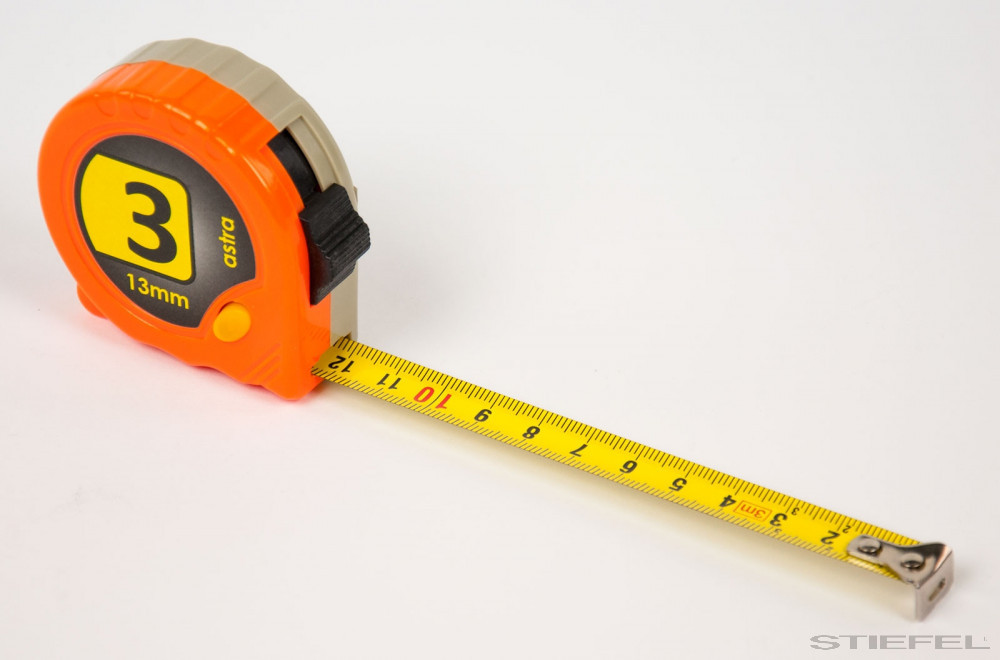 capătul benzii este dotat cu cârlig metalic glisant, pentru măsurarea corectă a dimensiunilor exterioare și interioare;