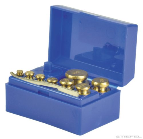 Greutățile sunt fabricate din alamă, asigurând stabilitate dimensională și rezistență în timp. Setul este livrat într-o cutie de depozitare din plastic, prevăzută cu sistem de închidere pentru protecție și transport sigur. Penseta inclusă permite manipularea corectă a greutăților, evitând contaminarea sau deteriorarea acestora.