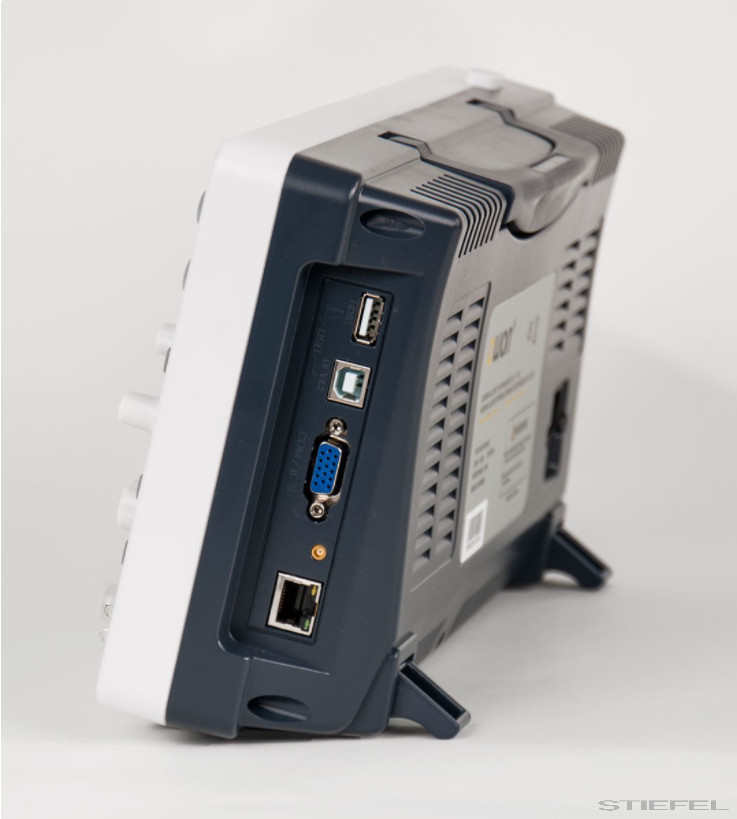 Osciloscop digital cu stocare, prevăzut cu interfețe LAN și ieșire VGA, permițând conectarea directă la PC, televizor sau videoproiector.