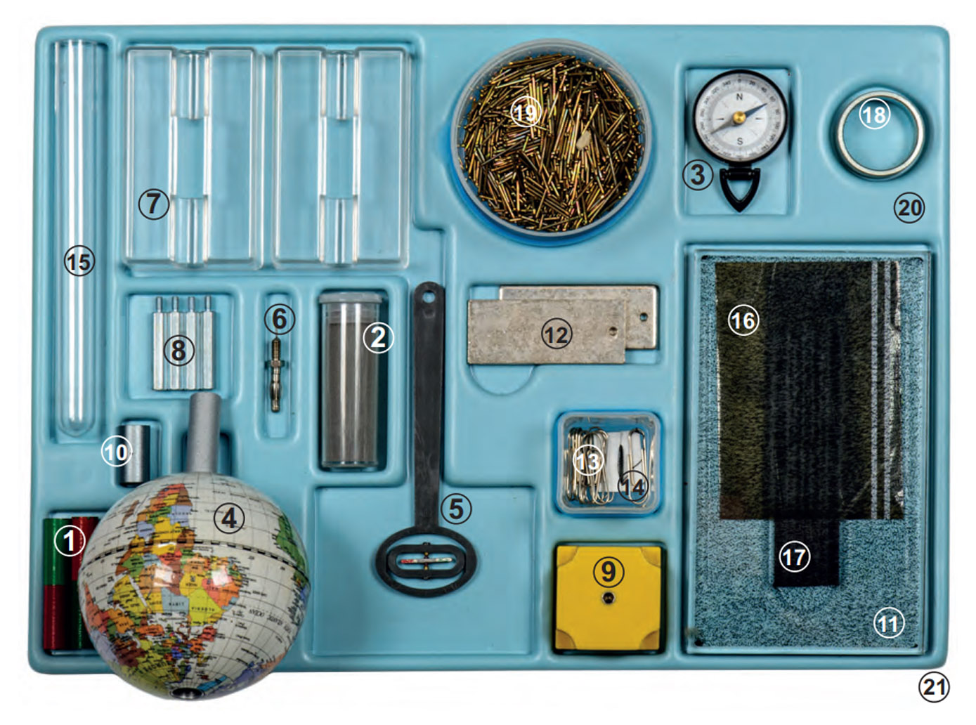 Set de echipamente pentru efectuarea a 19 experimente pe tema Magnetismului.