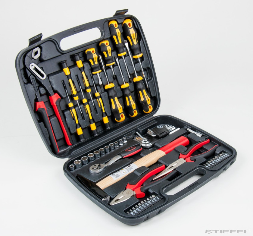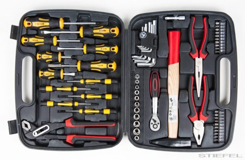 Set de scule de 58 de piese, în carcasă în formă de unealtă, pentru depozitare clară și ușor de organizat,