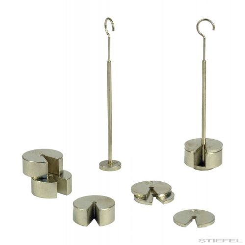 Set profesional de greutăți fantezate conceput pentru asamblarea rapidă a diferitelor combinații de mase compacte în experimente de fizică. Sistemul tip disc cu fantă permite montarea ușoară pe suportul inclus, oferind flexibilitate și precizie în determinări de forță și masă.