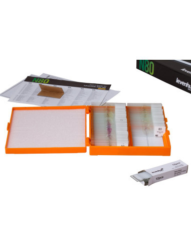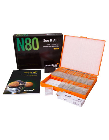 Cu setul Levenhuk N80 NG "See it all", sunteti mai aproape de a afla din ce este facuta aceasta lume. Veti invata din ce este compus un tendon, cum arata sangele pestilor, etc. Ghidul color va va prezenta descrieri uimitoare despre fiecare specimen.